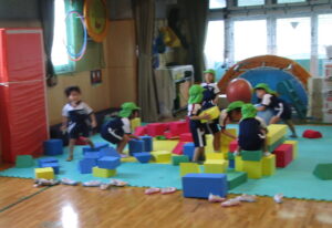 その後は、「しっぽ取りゲーム」、「ボールあそび」「ソフト積み木」。みんなでとても充実した時間を過ごすことができました。あ~楽しかった(^o^)