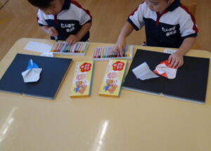 おうちでも、折り紙やお絵描きに親しんでもらえたらなあ、と思います。