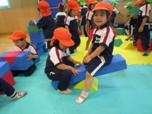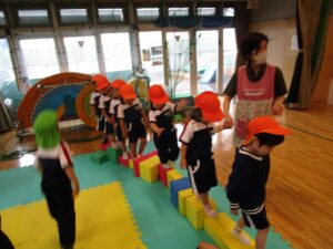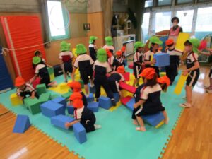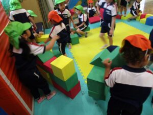 5/31(金)【わくAC】<屋内・運動あそび>ホールで遊んだよ! 2024/05/31 今日はA組さんとC組さんでお散歩の予定でしたが、あいにくの雨模様。予定を変更し、ホールで活動しました。普段の合同保育時間に一緒に遊んで過ごしていますが、目的を共にした活動をすることはとても新鮮な様子。子どもたち、とても喜んでいました! ▼一緒に何を作ろうかな? ▼乗り物を作ったり、橋渡をして遊びました! ▼最後はみんなでお城を作り悪い魔女からお姫様を守りました! わくわくA 金子 わくわくC 松下