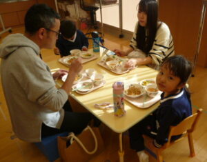 最初はいつもと違う雰囲気に緊張気味のお友だちでしたが、お家の人にかっこいいところを見てもらおうと、いつも以上に張り切る姿が見られ、楽しい試食会になりました♪