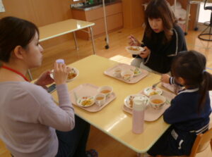 ▼こんな風に給食を食べているんだなあ。
