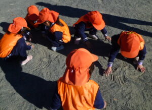 ご挨拶とお約束の確認をし、さあ遊ぼう!と声掛けしたとたん、お砂遊びを始めたC組さん。ならば少しだけ!