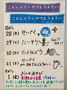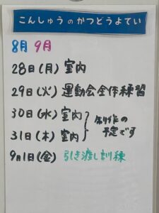 それに伴い、年間予定とは異なりますが、A組のみ8/29(火)プールあそびを実施し、その様子も撮影予定です。