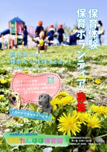 そんな環境の中で、自然と触れあい、走りまわり、子どもと一緒にたくさん心を動かしながら保育を経験してみませんか。