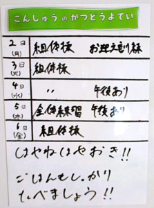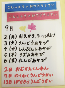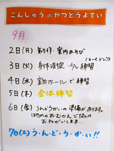 ◆◇1週間の予定◇◆9/2(月)~9/6(金)