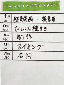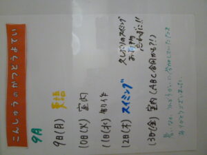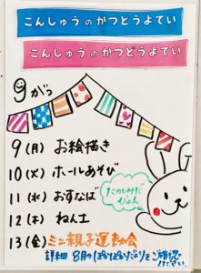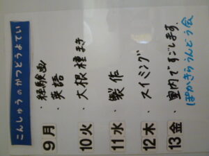 ◆◇1週間の予定◇◆9/9(月)~9/13(金)