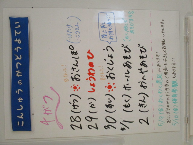 ◆◇1週間の予定◇◆4/28(月)~5/2(金)