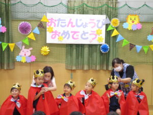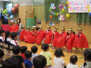 今日は7月の誕生会。今月は10名のお友だちがひとつお兄さん、お姉さんになりました。お祝いされる方だけでなく、する方もうれしい気持ちになれる誕生会♪ 保護者の方に見守られ、緊張しながらも堂々と自己紹介することができました。素敵な1年になりますように☆