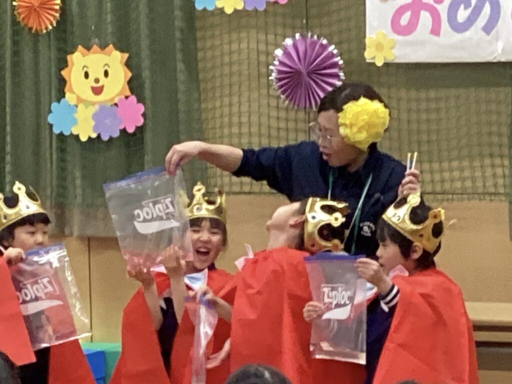 ▼魔法のお花をつけた魔法使いがお誕生会にやってきてくれました!