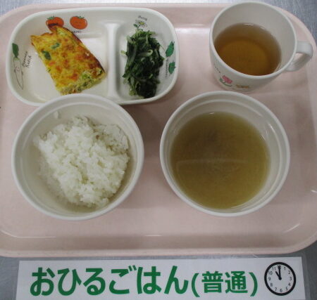 ★3/25(水)今日の給食・おやつ★ 2026/03/25 ◆◆◆給 食◆◆◆ ご飯 そぼろ入り卵焼き ほうれん草ともやしの磯香和え なめこと高野豆腐の味噌汁 ————————————— ◇◇◇おやつ◇◇◇ 牛乳 五平餅 ================================ ★離乳食のメニュー★ (※完了期食・・軟飯+幼児メニューに同じ) ◆◆◆給 食◆◆◆ <後期食> ※提供なし ◇◇◇おやつ◇◇◇ ※提供なし