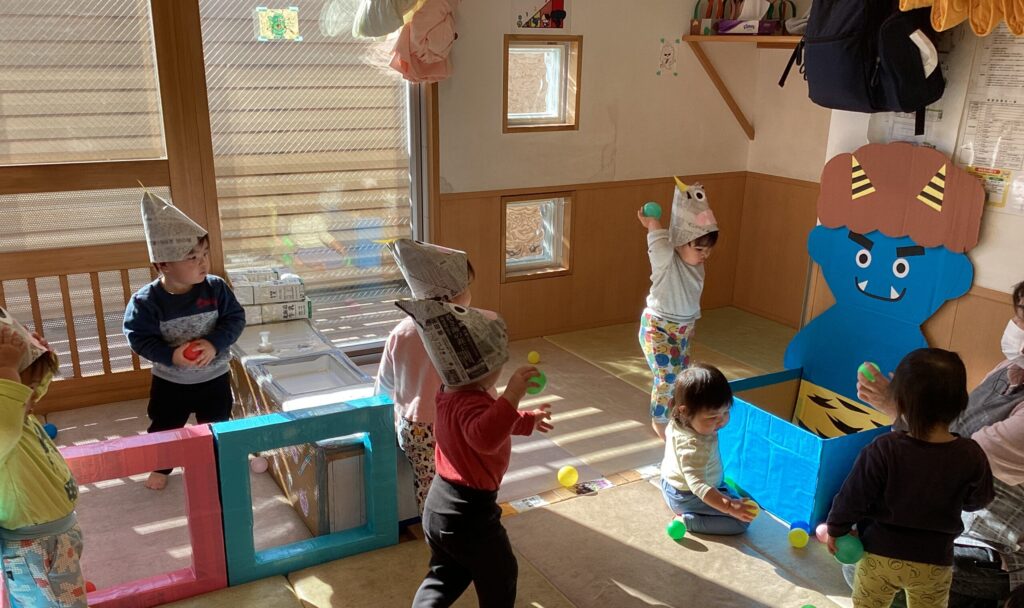 今日は節分です。みんなで豆まきをしました。鬼はみんなの心や災いを表しているそう。そんな鬼を退治できたかな。